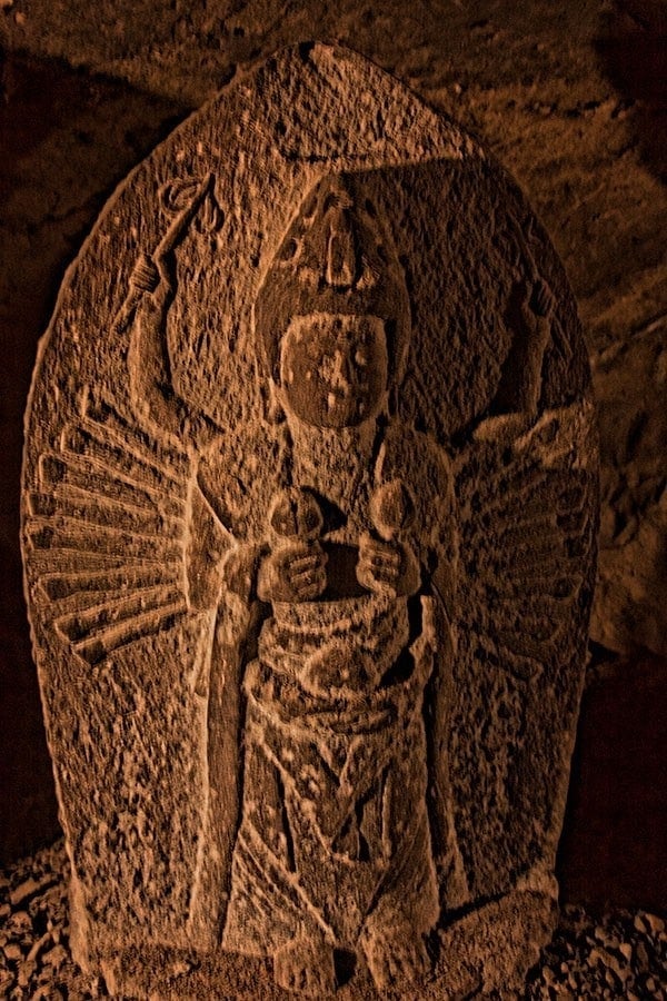 The first cave contains statues of the Buddha and then it splits in two heading deep into the cliff, the first fork contains a number of statues representing the island’s goddesses, the second is shorter and houses a statue of the sun goddess, Amaterasu.