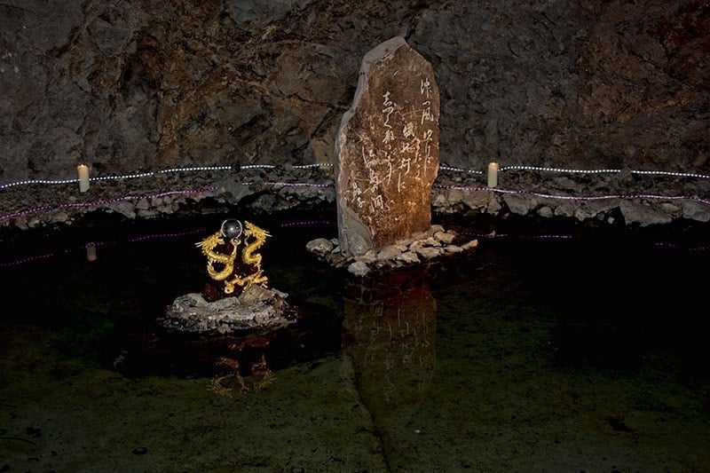 In the second cave, you will find a pond and a statue of the now well-behaved dragon who became a guardian of the fishermen. This cave is a bit glitzy for my taste with flashing purple lights around the pond but the history is interesting especially when you consider the natural events that are preserved and recorded within the legend.